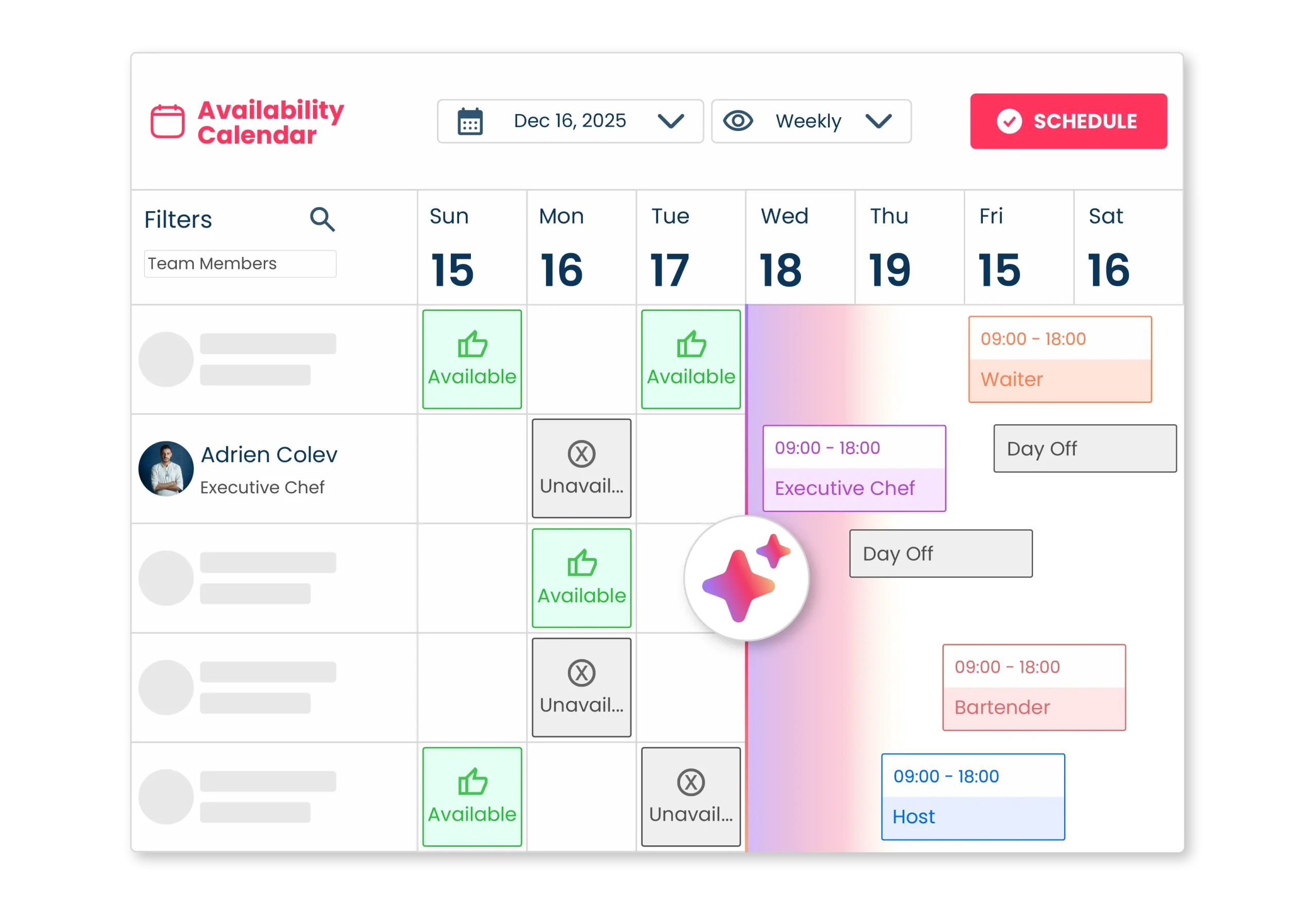 Assign the right employees to match shifts, avoid time conflicts, and optimize your workforce with Auto-Schedule