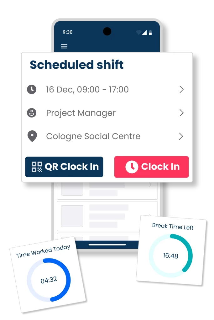 Use a tablet kiosk in offices and fixed workplaces. Clock in and out quickly with a PIN or QR code